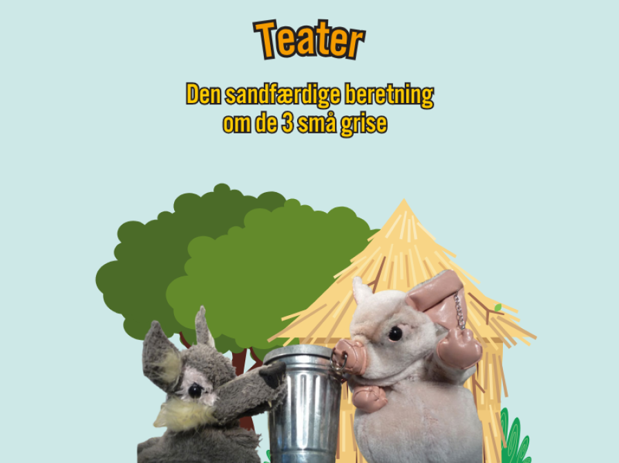 Claus Mandøe fra De Røde Heste gæster Felsted Bibliotek med sin skøre, snaskede og helt ærlige version af de tre små grise. Ja, du læste rigtigt – nu får vi ulvens fortælling!